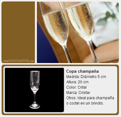 Alquiler copa Flauta brindis con champaña, alquiler de menaje cristalería en Bogotá, Chía, Cajicá, Tabio, Tenjo, Funza, Madrid, Mosquera, Facatativá, la Calera, Sibaté y toda Cundinamarca.